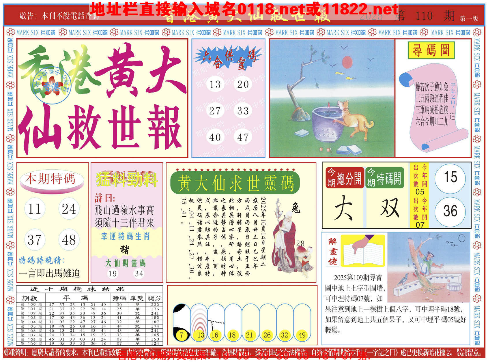 019 黄大仙救世报A 020 黄大仙救世报B 021 香港黄大仙报A 022 香港黄大仙报B