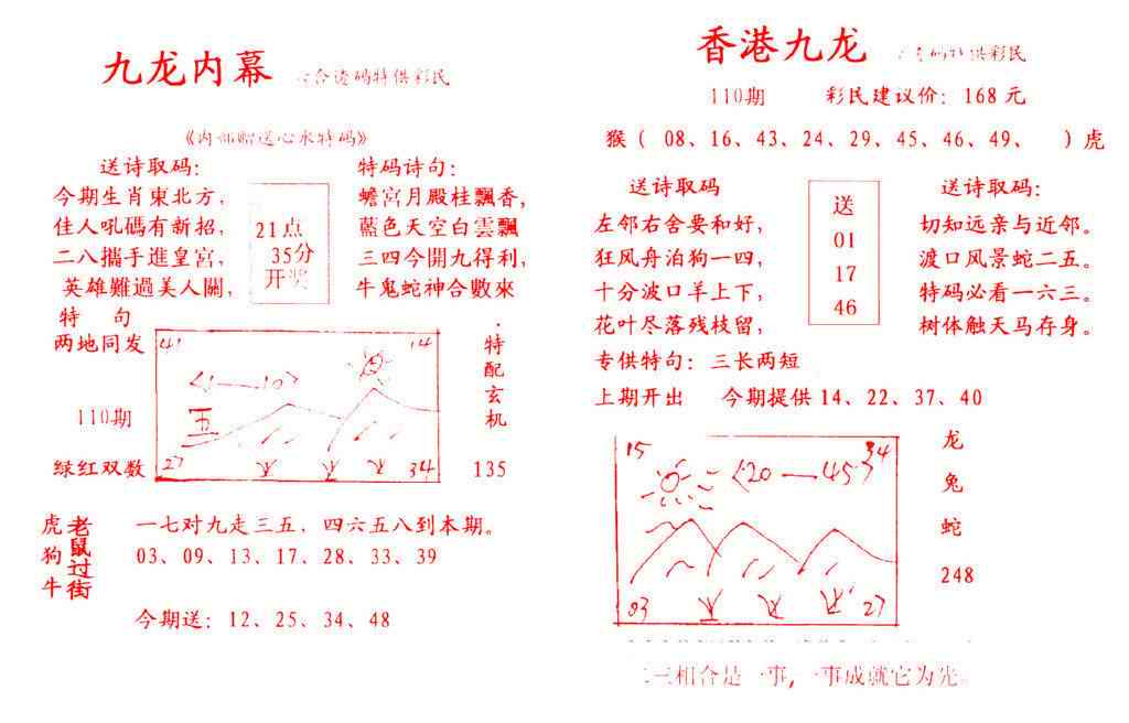 1532 正宗金牌报 1533 新喜报 1534 九龙内幕A 1535 九龙内幕B