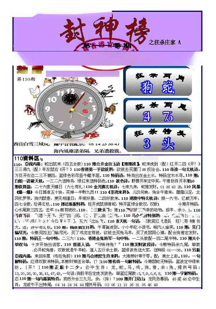 1460 封神榜B 1461 六合风云A 1462 六合风云B 1463 曾道人内幕泄密